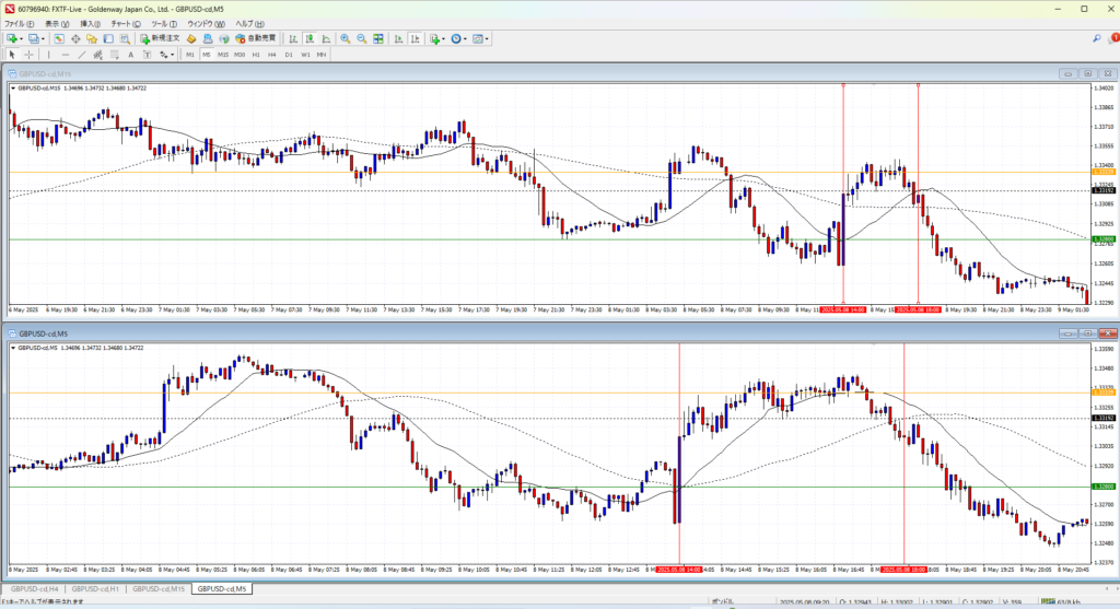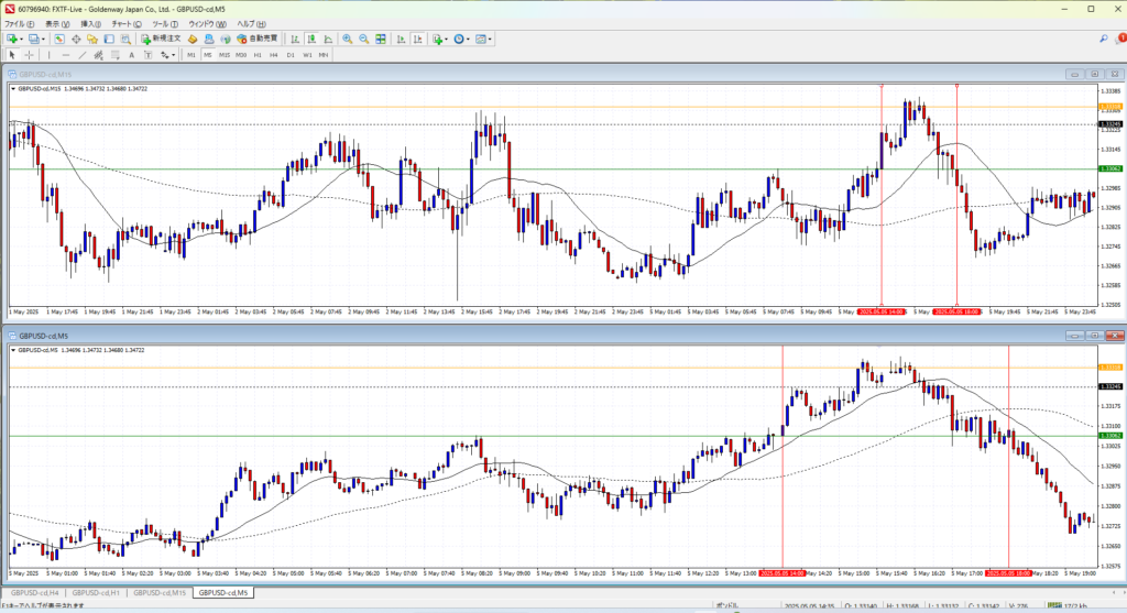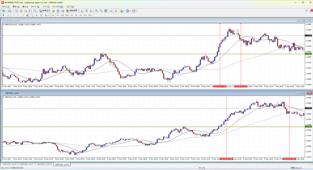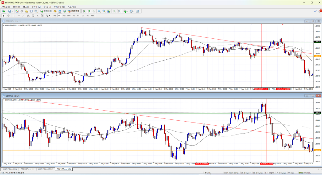 15分の波を5分で取りに行くなら10pipほどとれた。しかしそれを毎日続けても勝てるとは考えにくい。結局どの波をどの理屈で取りに行くかを固めないと