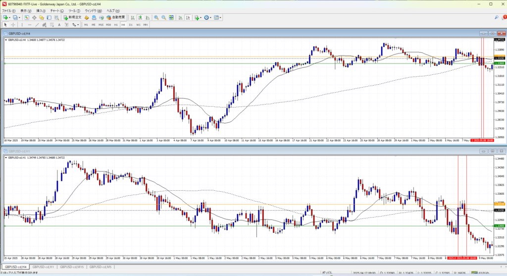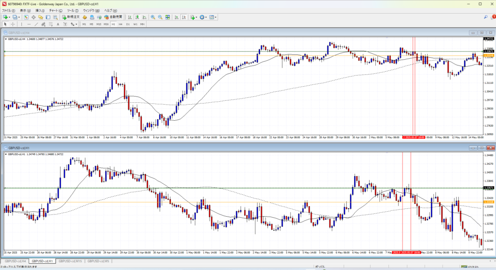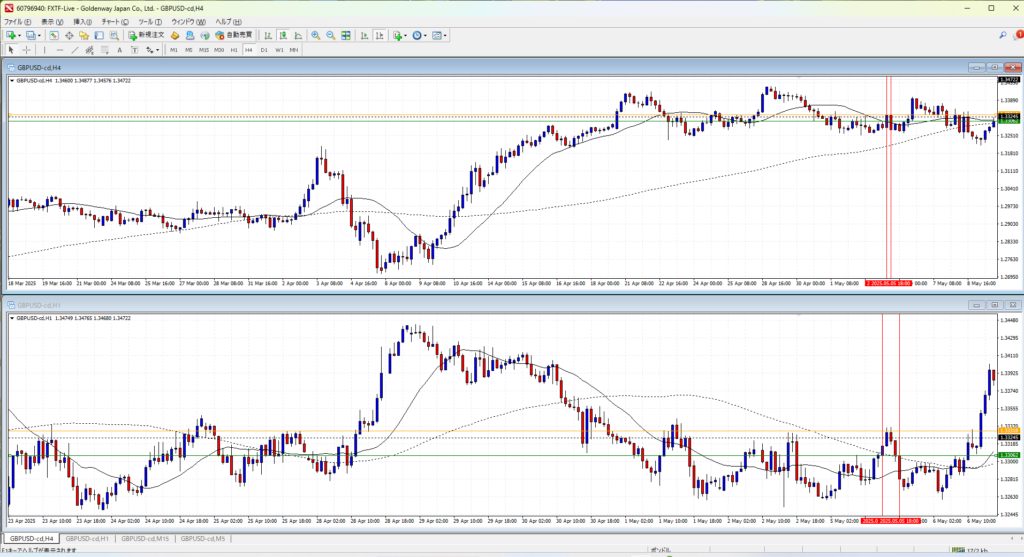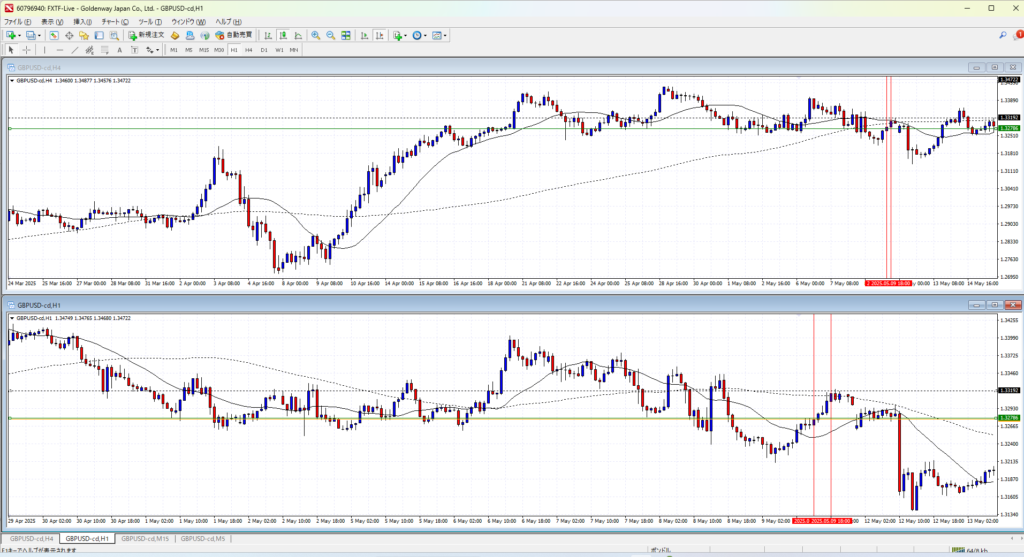 4Hの波を追うなら、切り下げ抜けで入って緑抜けを試してよかったが